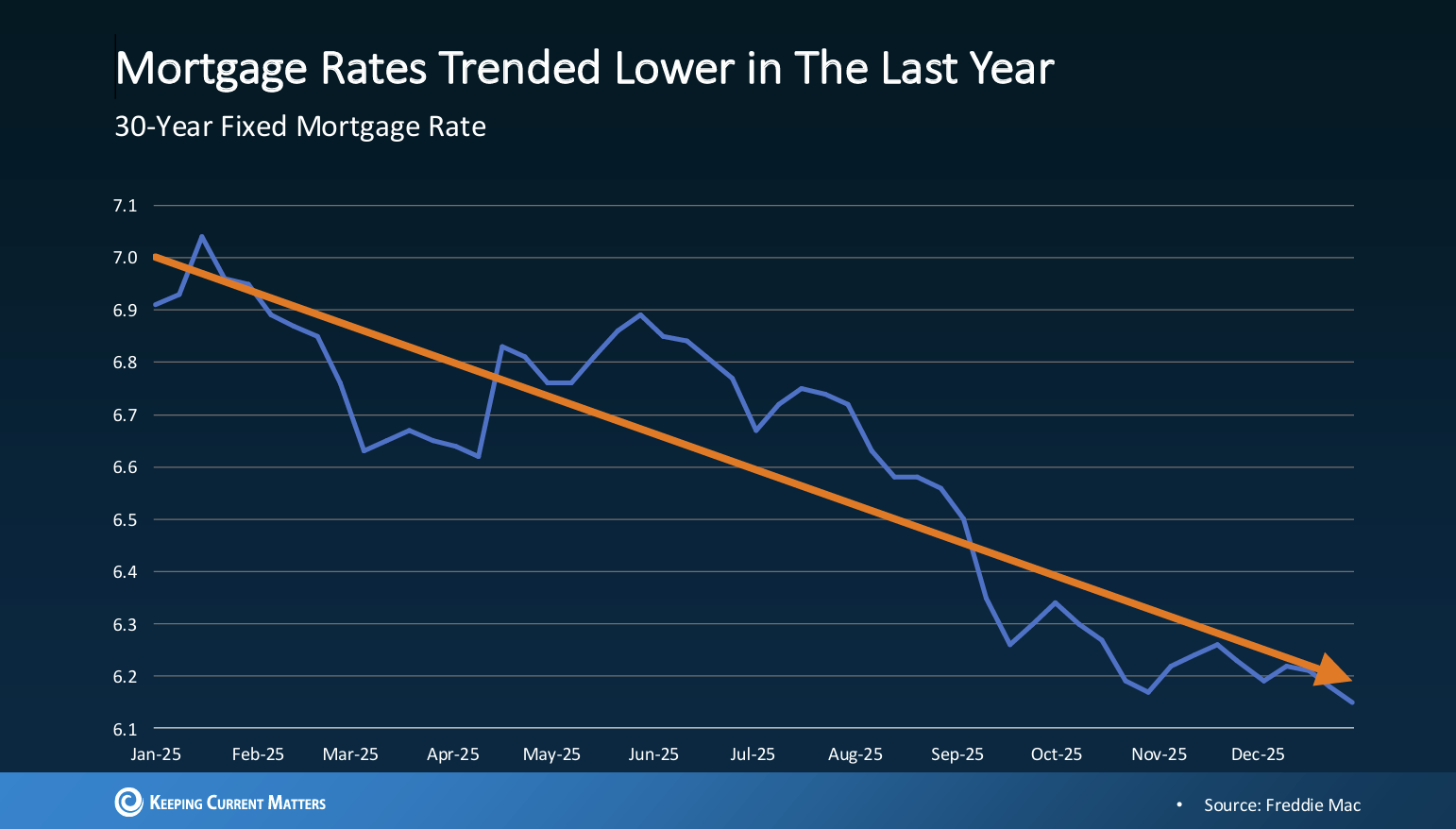 Over the past year, mortgage rates have trended downward, landing in the low-to-mid 6% range by the end of 2025. That’s not theoretical optimism. That’s actual movement.