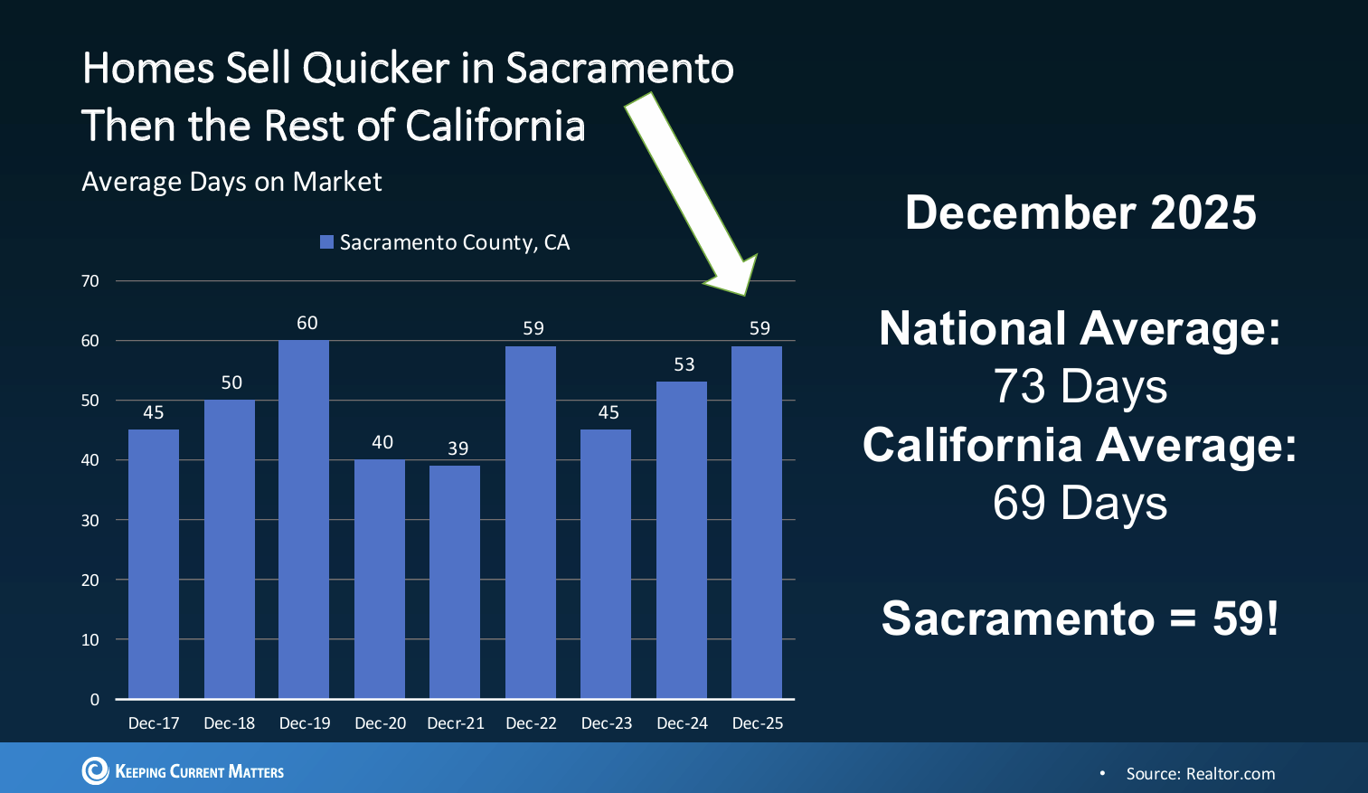 • Sacramento homes averaged about 59 days on market